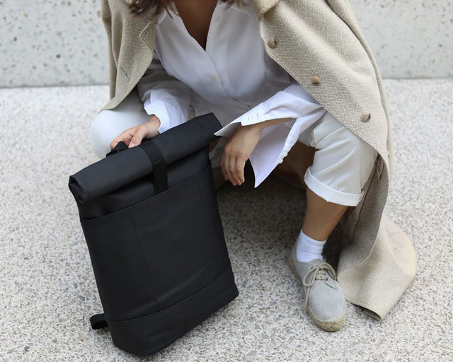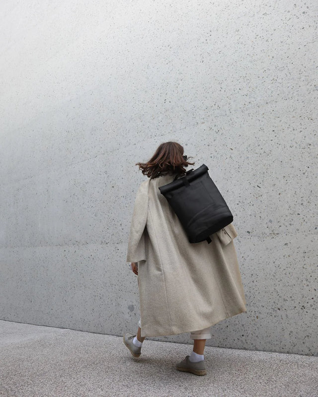 This minimalist backpack is suitable for any occasion. Whether on the road by bike, shopping or in the nightlife. The roll-top closes with a hook and loop fastener and allows a practical filling of the Hajo backpack.