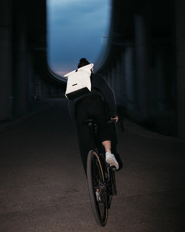 The Phantom Series is the next generation of minimal aesthetic backpacks for urban outdoor enthusiasts and cyclists. It will keep its matte-decent finish during the day but at night, it will become highly reflective. Thanks to our custom material ECO-RFLX-900, microscopic glass beads will send back light to its source providing an extra safety feature while biking or walking.